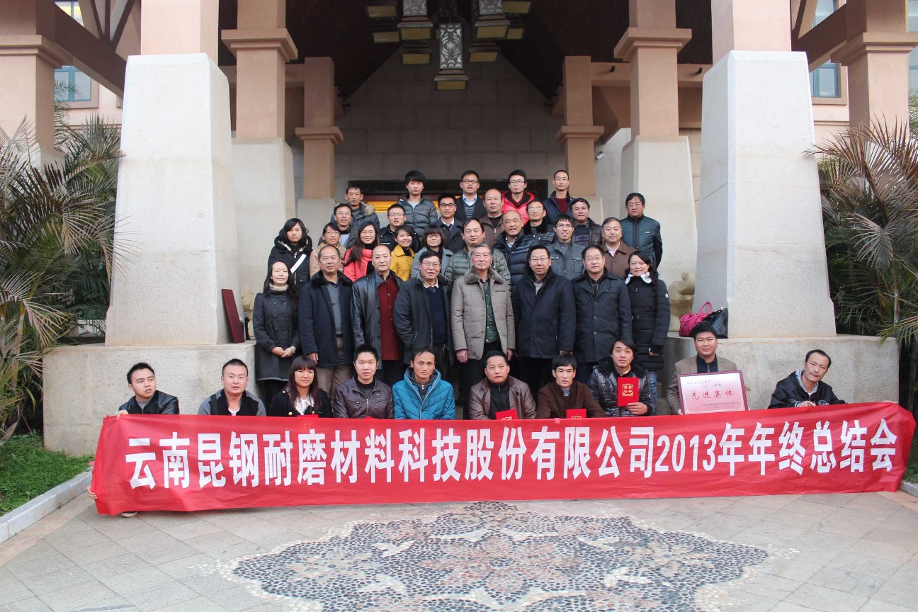 云南昆鋼耐磨材料科技股份有限公司2013年年終總結(jié)會(huì)于2013年12月21日在昆明海麗賓雅度假酒店成功召開。會(huì)上,優(yōu)秀員工代表發(fā)表了工作感言,公司部門負(fù)責(zé)人(或代表)、公司經(jīng)營班子成員分別作了2013年度工作總結(jié)匯報(bào)。公司領(lǐng)導(dǎo)及股東代表均作了重要講話,對(duì)公司2013年取得的成績給予了高度肯定,并對(duì)公司2014年即將開展的工作做出了重要指示。